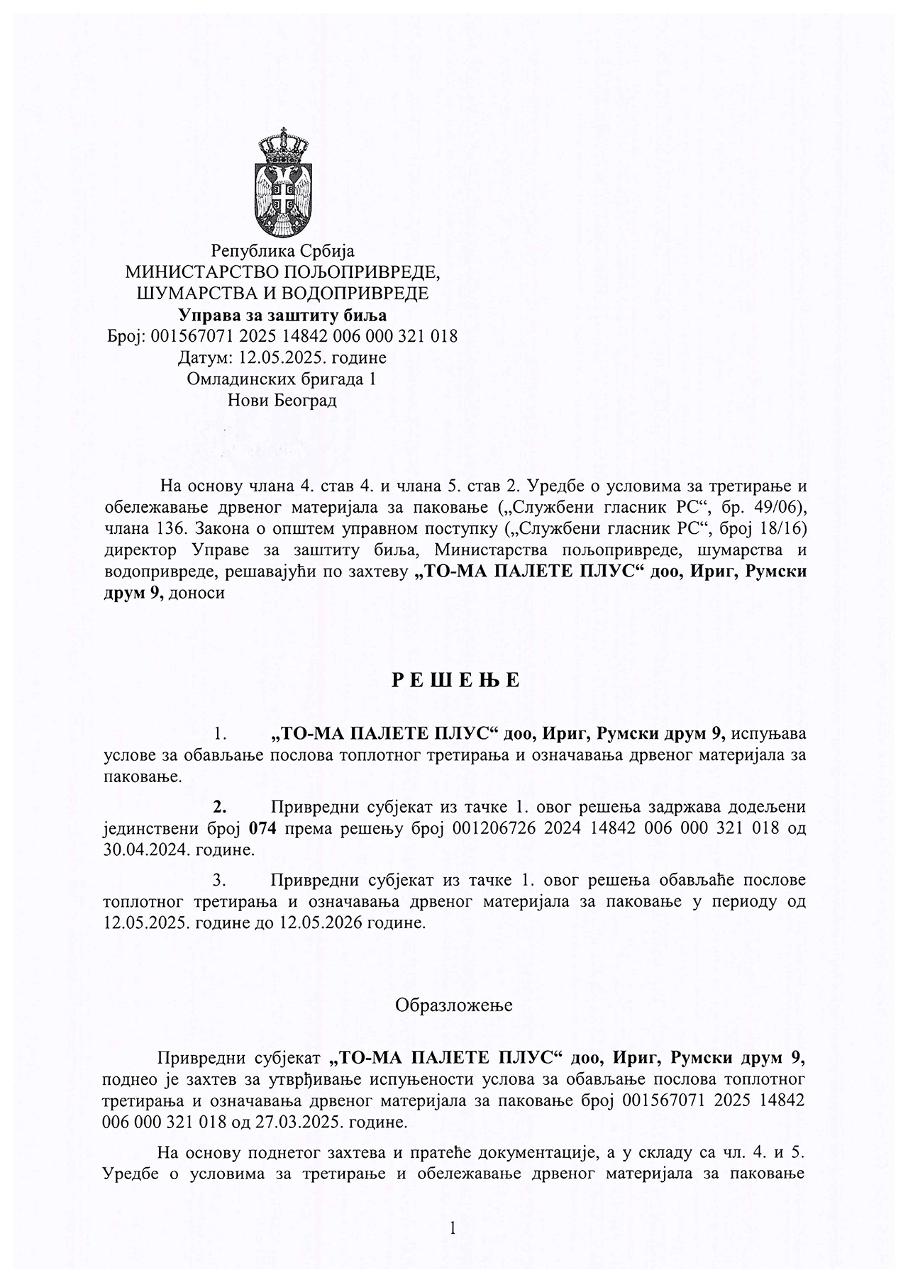 6. Rešenje HT RS-074 To-Ma palete plus doo 2023 04.05.2023