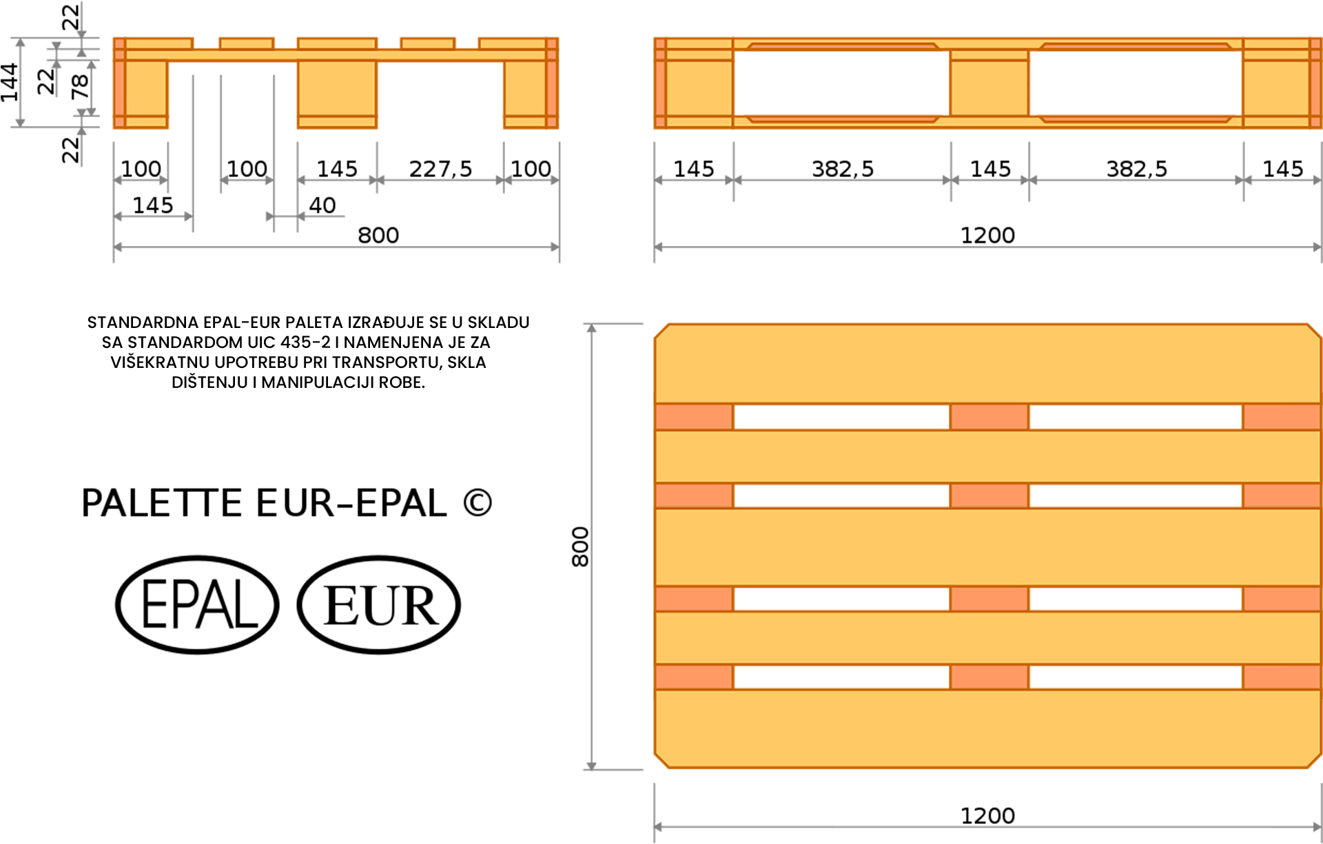Naša najznačajnija paleta koju proizvodimo je standardna EPAL/EUR paleta