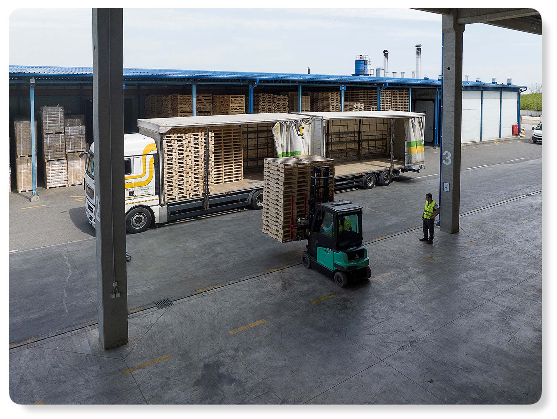 Skladištenjem obezbeđujemo potrebne količine i vrste paleta za pravovremene isporuke korisnicima u skladu sa obavezama i prema zahtevu